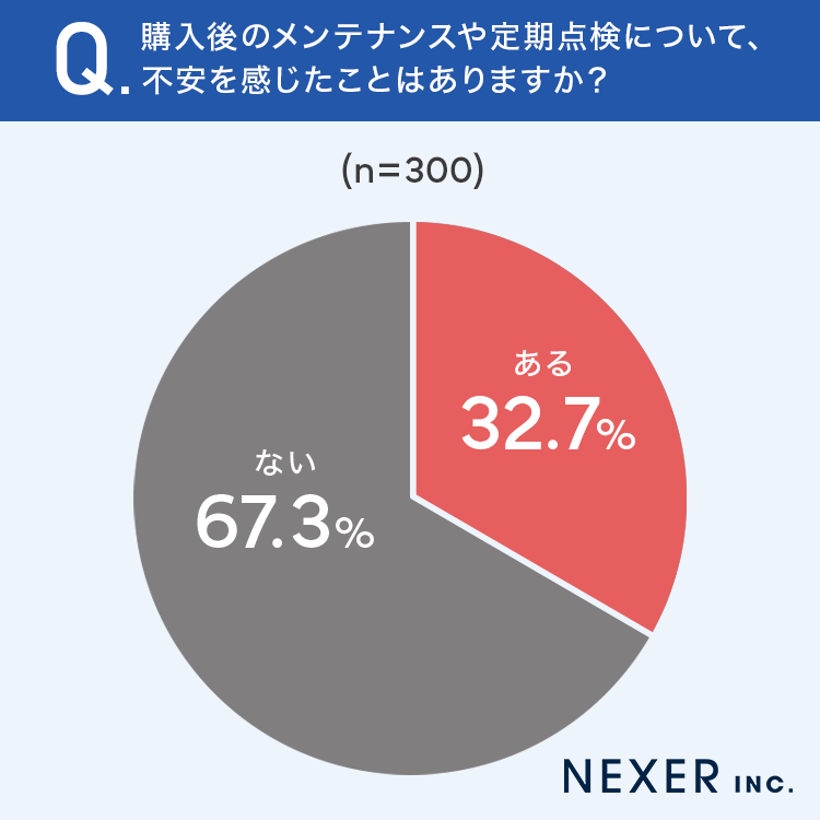 続いて、購入後のメンテナンスや定期点検について、不安を感じた経験があるかどうかも聞いてみました。