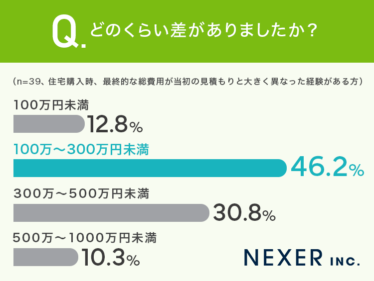 続いて、住宅購入時に最終的な総費用が当初の見積もりと大きく異なった経験があるかどうかを聞いてみました。