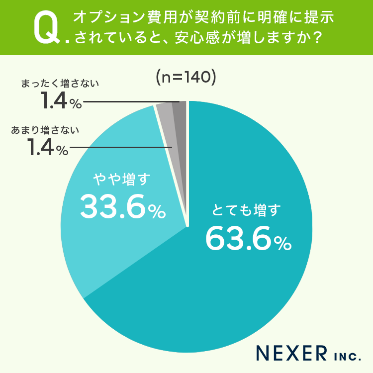 最後に、オプション費用が契約前に明確に提示されていた場合、安心感が増すかどうかを聞いてみました。