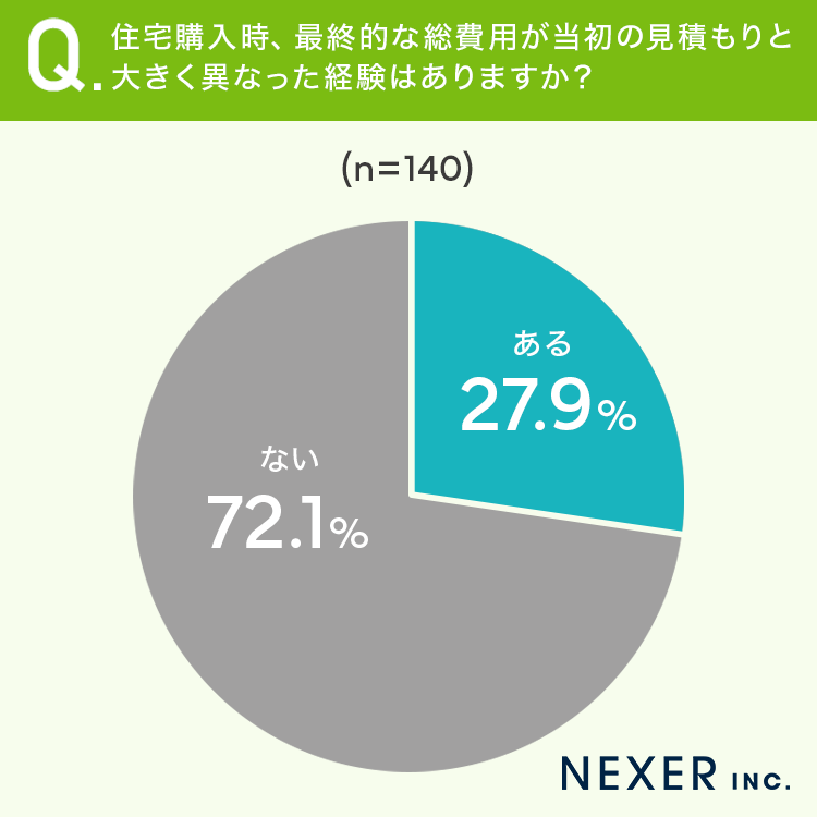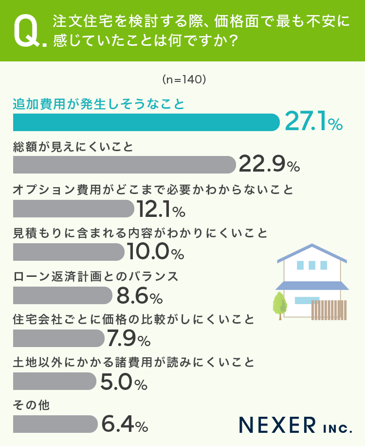 ということで今回は株式会社NEXERと共同で、事前調査で「注文住宅の購入をしたことがある」と回答した全国の男女140名を対象に「注文住宅の『価格・費用の透明性』」についてのアンケートをおこないました。