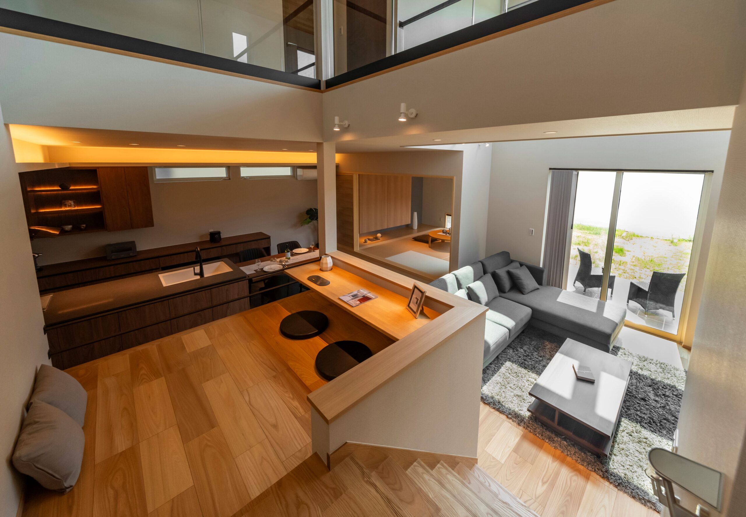 LDKを見渡す中二階。ワークスペースやお子さまの学習スペースとして大人気です。