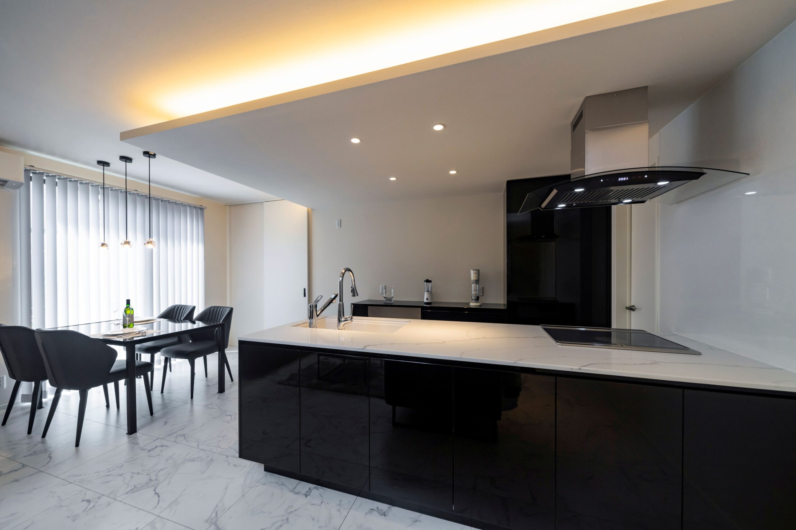 1階に寝室を配置し、生活動線をすべてワンフロアで完結させた住まい 白と黒で統一した洗練されたデザインで、ホテルのような上質な生活を叶えます