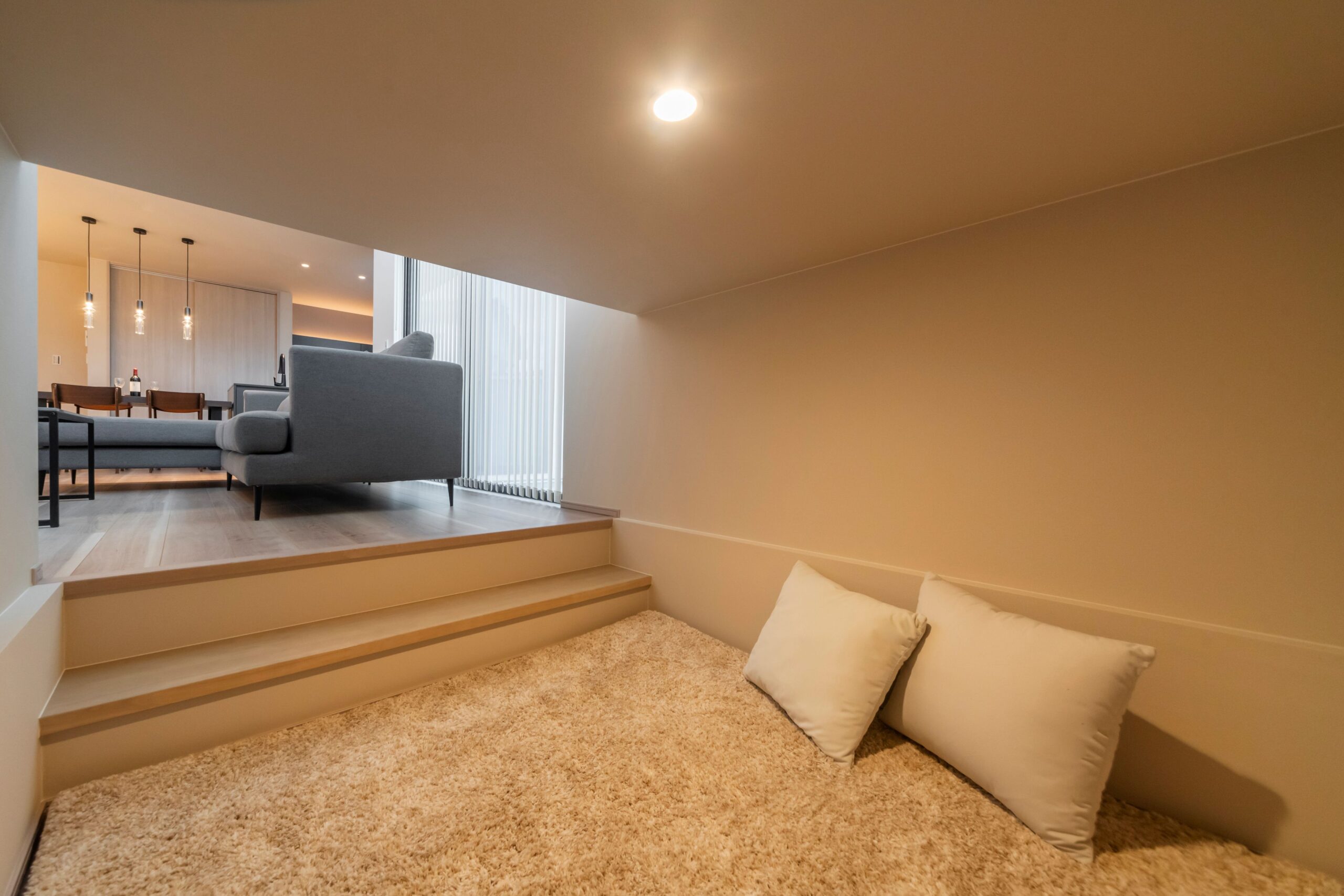中二階の下の半地下スペース。周りが適度に囲われた心落ち着く空間です。